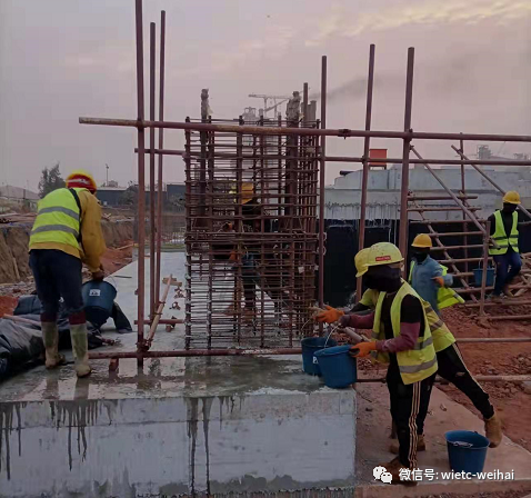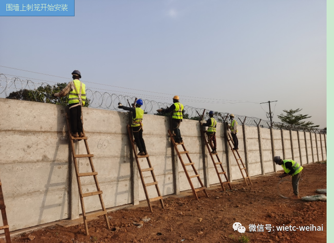 國內(nèi)發(fā)運的圍墻上刺繩、鐵蒺藜等物資受幾內(nèi)亞港口人員罷工影響,提貨時間延誤了20天,為了確保能夠在約定的時間內(nèi)完成施工任務(wù),項目組在春節(jié)短暫休整后馬上開始加班加點,追趕進度,度過了一個忙碌但又充實的新年。